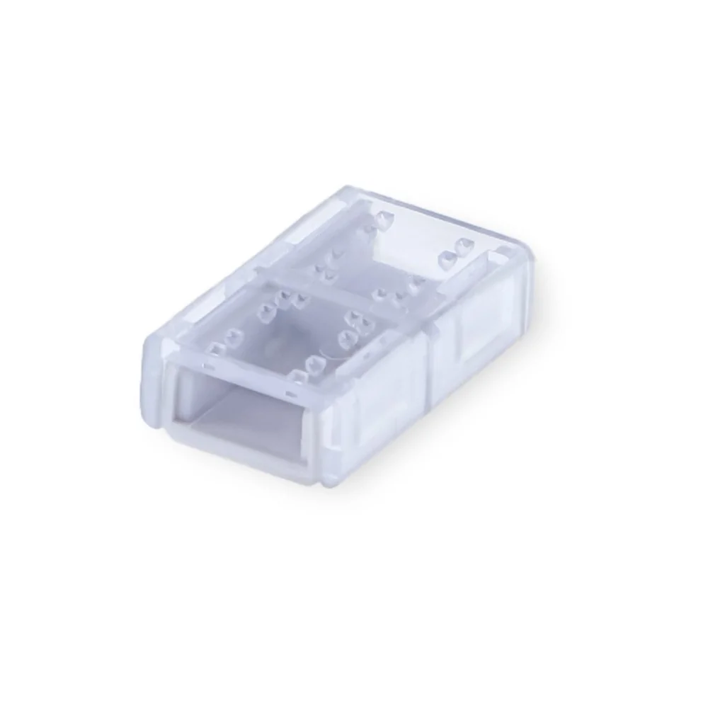Usa il connettore giunzione LED 220V per: prolungare un'installazione esistente aggiungendo metri di striscia, riparare una striscia tagliata per errore, collegare due bobine diverse, creare percorsi luminosi continui. Ogni connettore unisce due estremità in linea retta.
