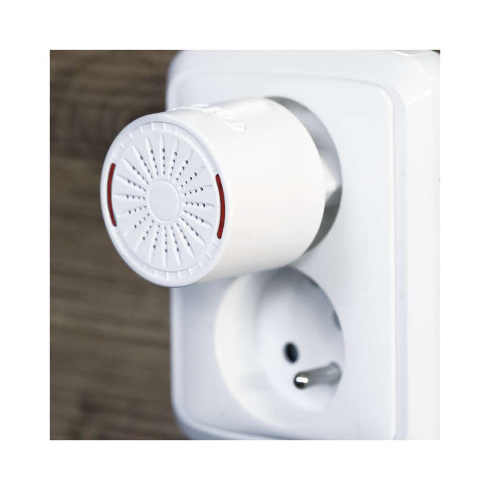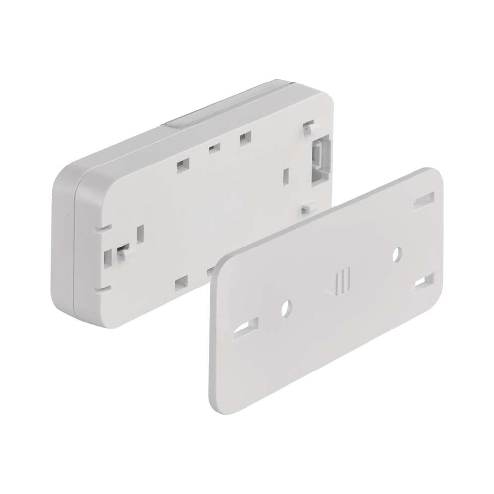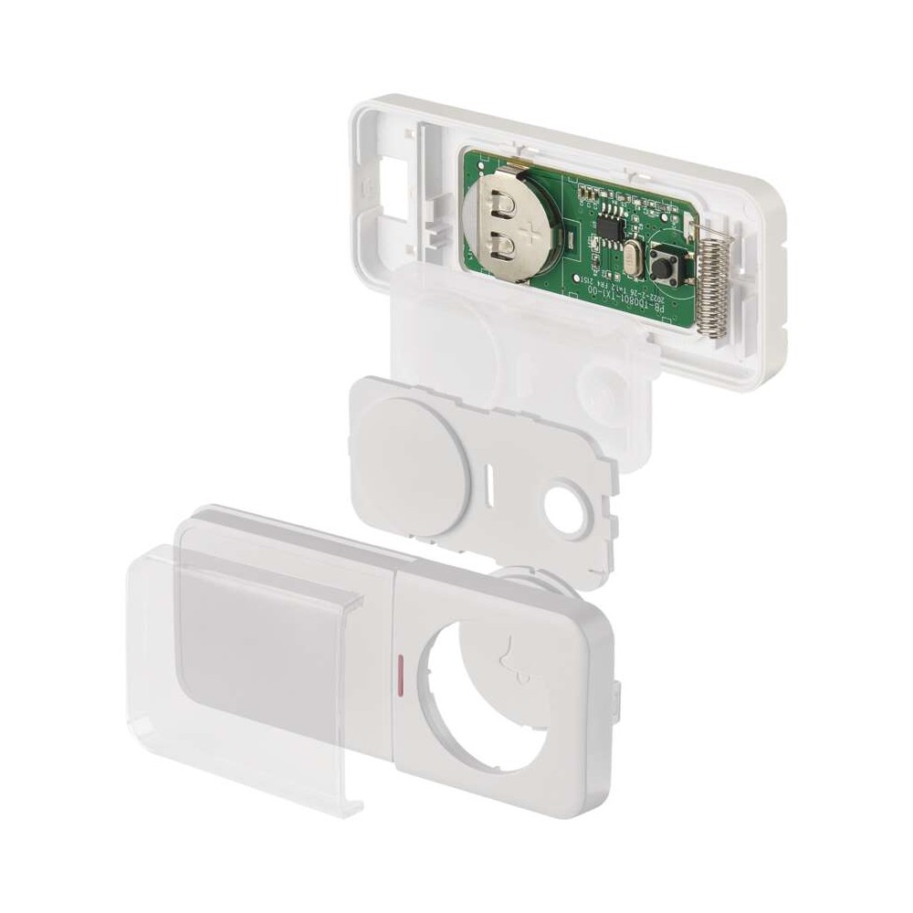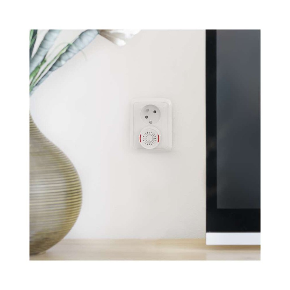 Non servono cablaggi: collega il ricevitore, posiziona il pulsante con il biadesivo incluso e il sistema è pronto. La funzione di autoapprendimento memorizza l’associazione anche dopo un blackout.