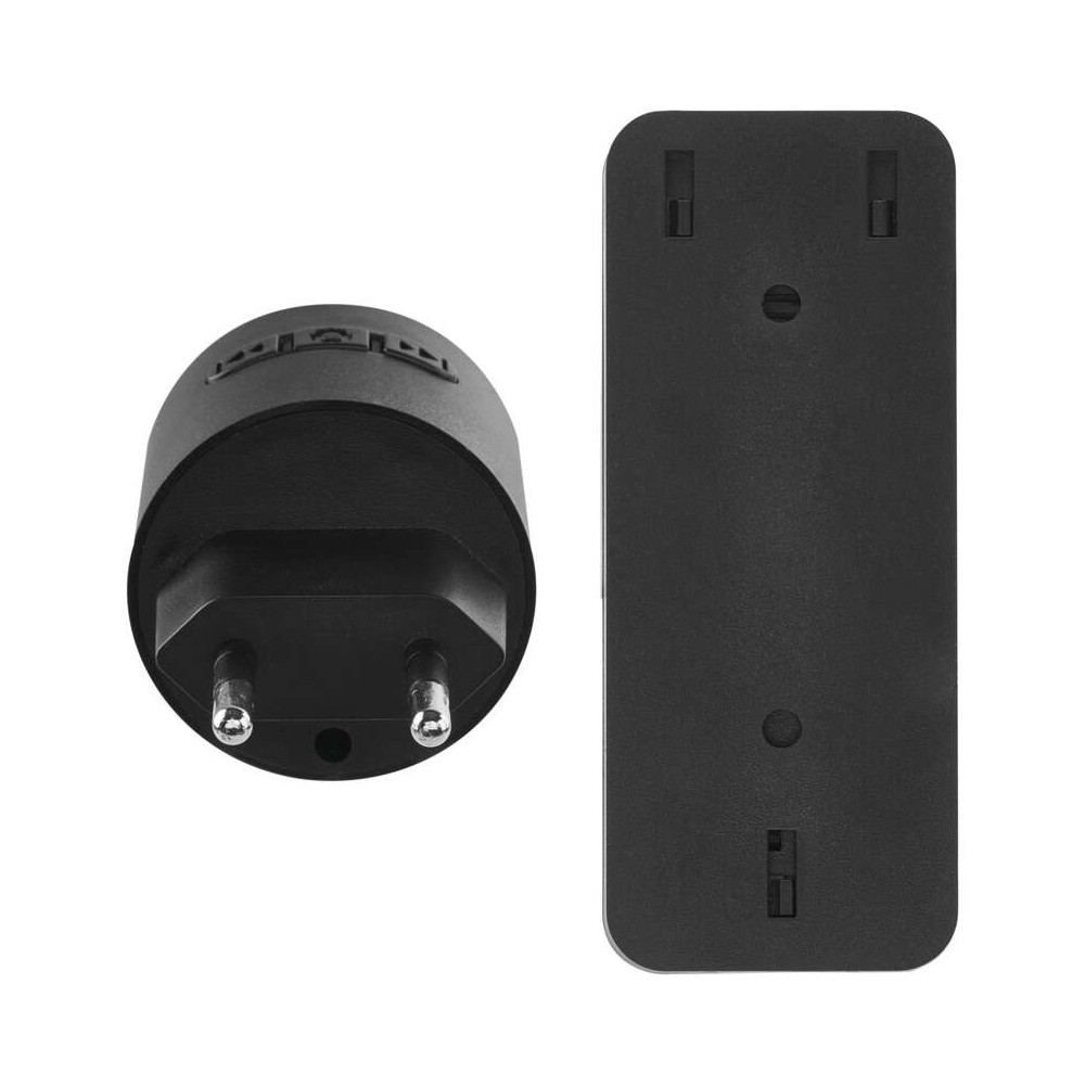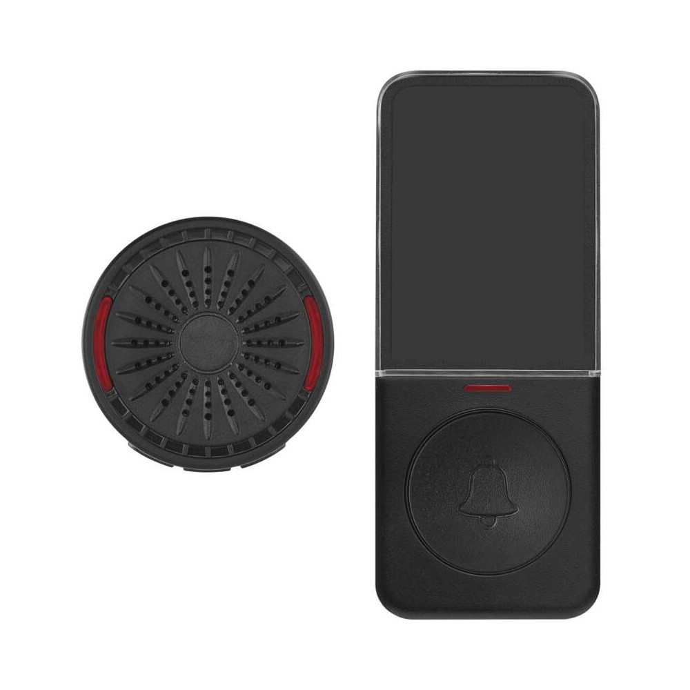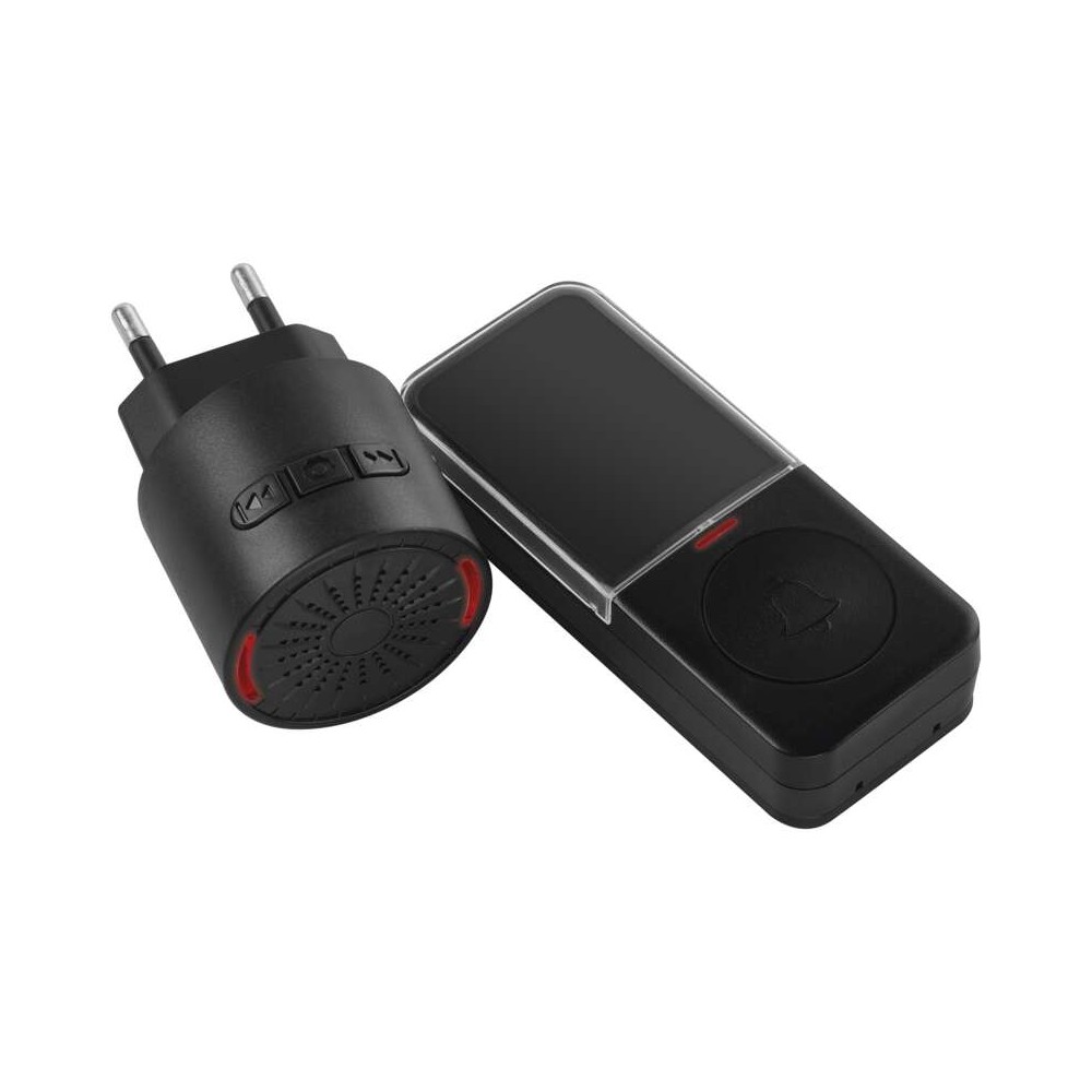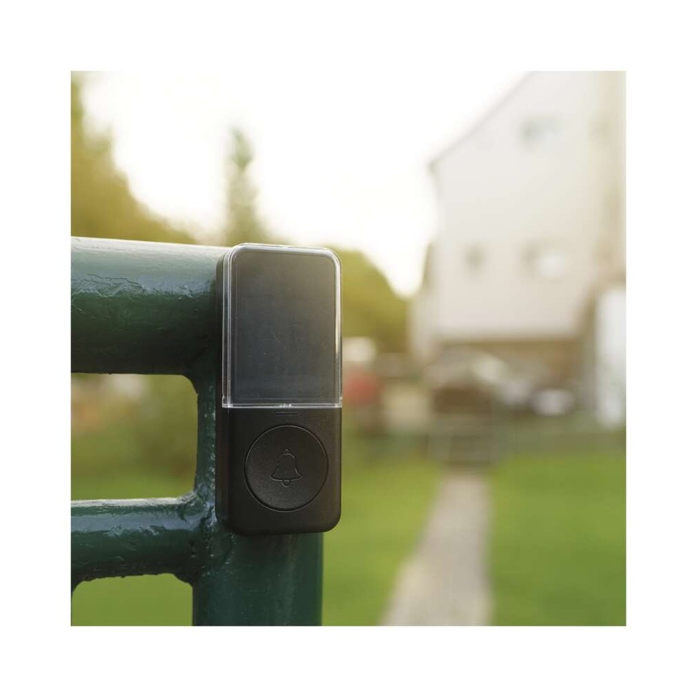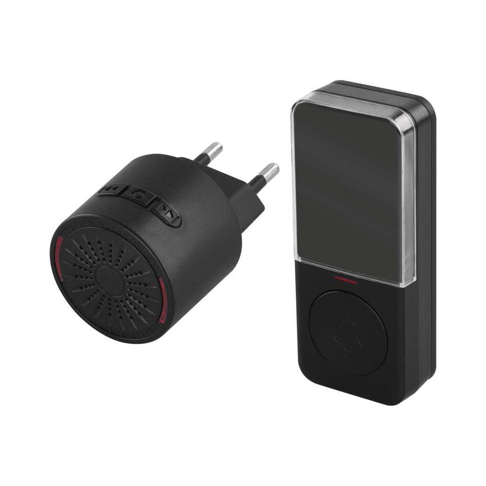 Questo campanello senza fili in nero è moderno e pratico. Il ricevitore tondo si collega a una presa 230 V. Il pulsante wireless IP56 è impermeabile, funziona con batteria CR2032 e può essere montato all’esterno senza problemi.