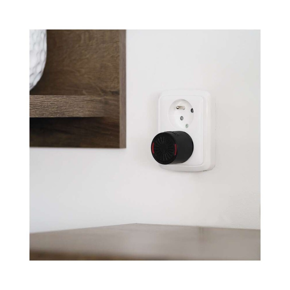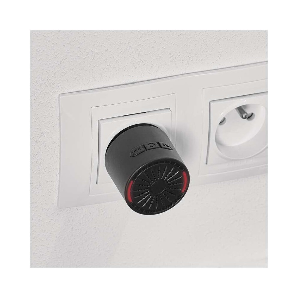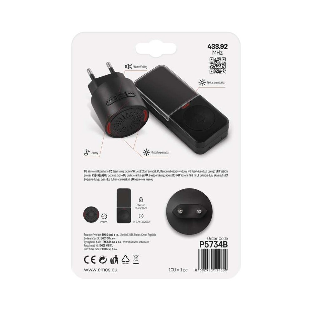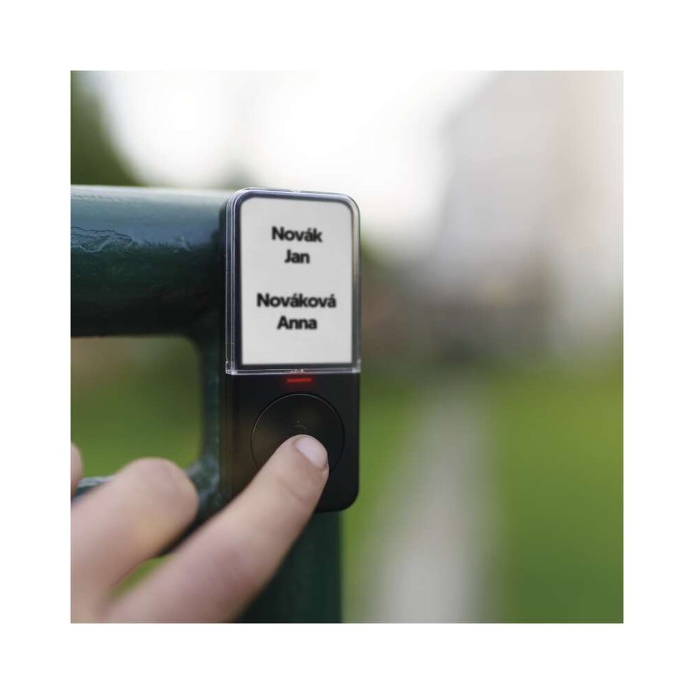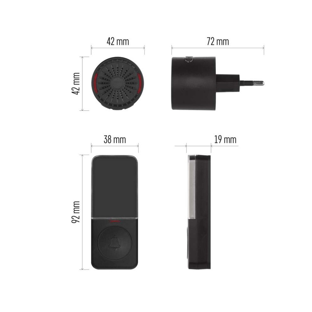 Questo campanello senza fili in nero è moderno e pratico. Il ricevitore tondo si collega a una presa 230 V. Il pulsante wireless IP56 è impermeabile, funziona con batteria CR2032 e può essere montato all’esterno senza problemi.