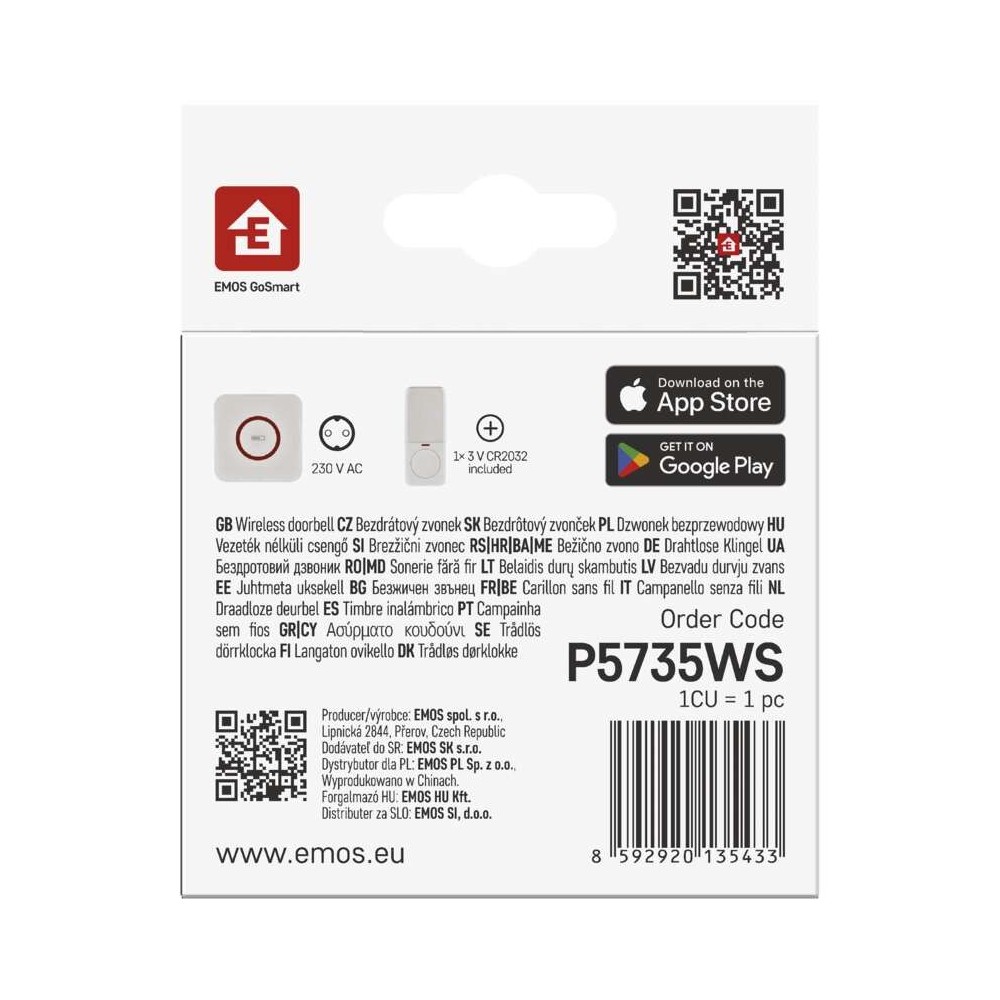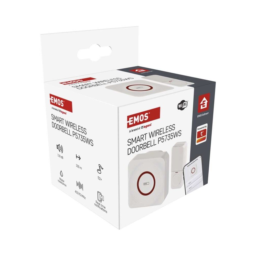 Il campanello senza fili smart EMOS P5735WS unisce tecnologia e comodità. Grazie alla connessione WiFi e all’app EMOS GoSmart ricevi notifiche sul tuo smartphone in tempo reale, controlli volume e melodia e integri il campanello con altri dispositivi smart compatibili TUYA. Perfetto se sei in giardino, garage o ufficio: non perderai più consegne o visite importanti.