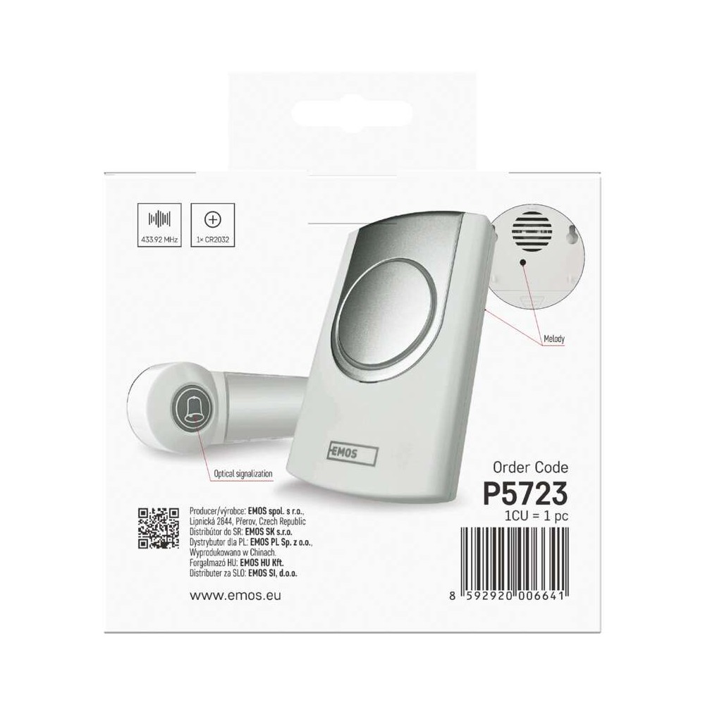 Campanello Senza Fili Bianco 100m 75dB a Batterie | EMOS P5723