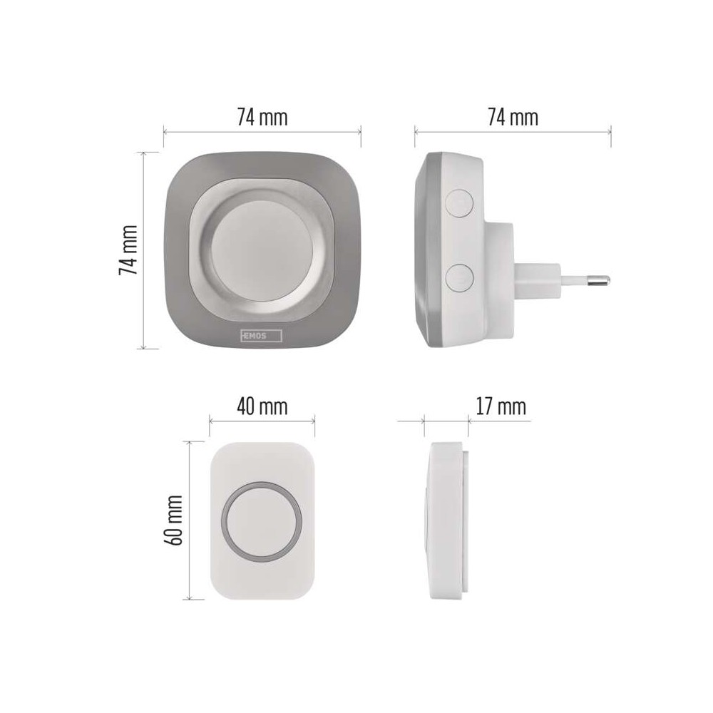 Il campanello senza fili quadrato EMOS P5733S in colore argento è pensato per chi vuole un campanello potente, elegante e facile da installare. Con una portata fino a 150 metri in campo aperto e un volume regolabile fino a 110 dB, questo campanello è perfetto per abitazioni, uffici e negozi. La luce di segnalazione integrata nel ricevitore ti avvisa anche visivamente, così non rischi di perdere una chiamata, neppure in ambienti rumorosi.