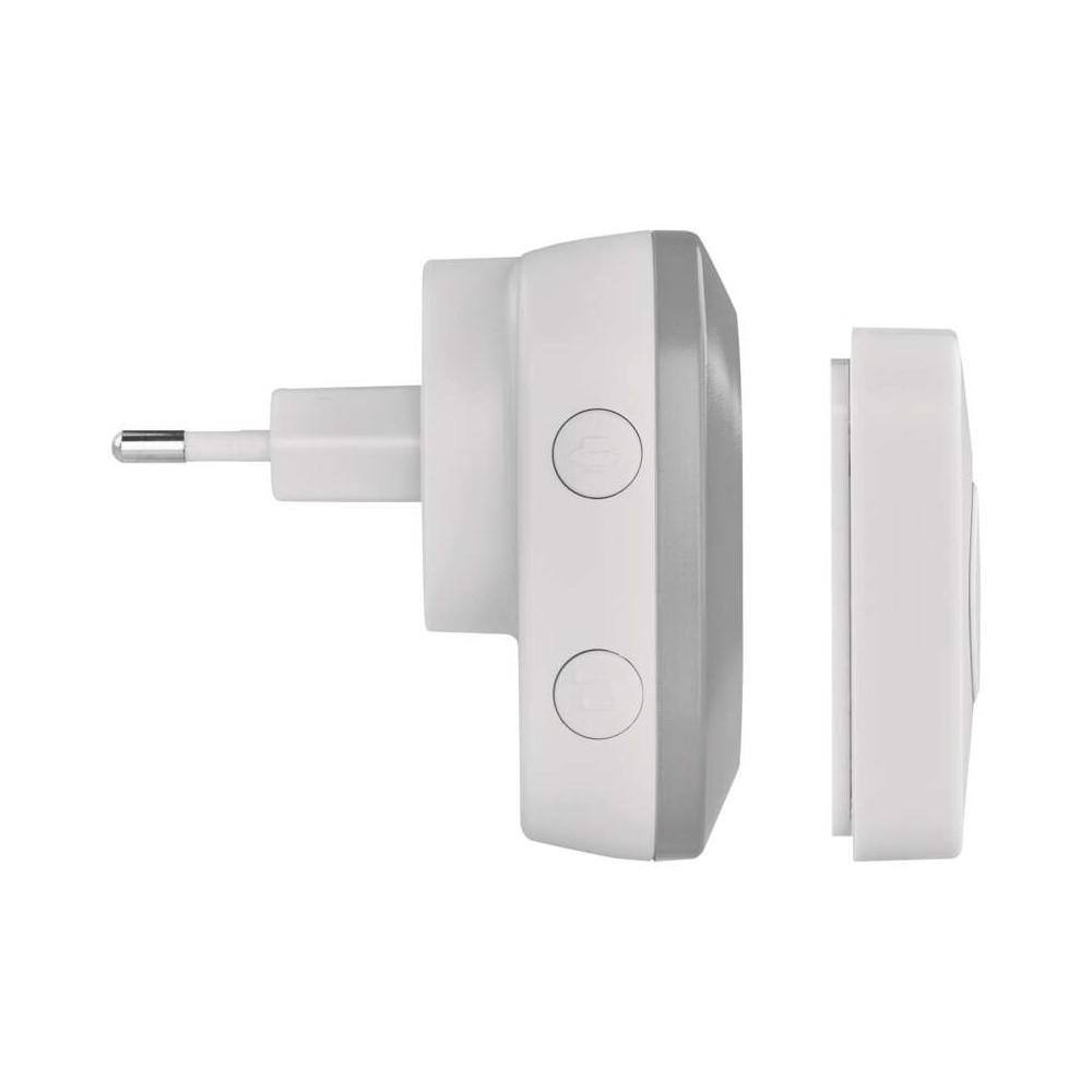 Il ricevitore si collega a una presa 230 V, mentre il pulsante da esterno è IP44 e funziona con batteria CR2032 inclusa. Il sistema usa la tecnologia di autoapprendimento: il pulsante e il ricevitore si associano automaticamente in pochi secondi e l'abbinamento resta memorizzato anche dopo un blackout. Nessun cablaggio: il campanello senza fili si installa in pochi minuti con biadesivo o viti.