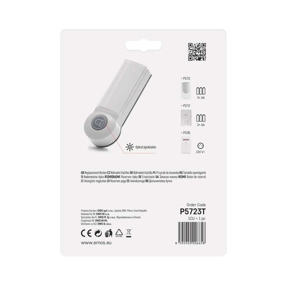 Pulsante Senza Fili Bianco EMOS P5723T | Ricambio per Campanello P5723