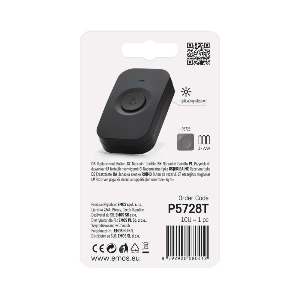 Il pulsante ricambio campanello EMOS P5728T è un ricambio originale pensato per i campanelli senza fili EMOS P5728 e P5730. È la scelta ideale per chi deve sostituire un pulsante guasto o aggiungere un secondo punto di chiamata per ingressi aggiuntivi.