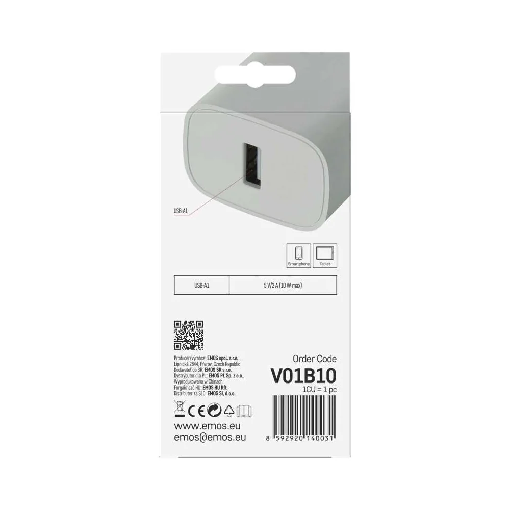 Caricabatterie Cellulare Smartphone USB Universale 10W 5V 2A | EMOS V01B10