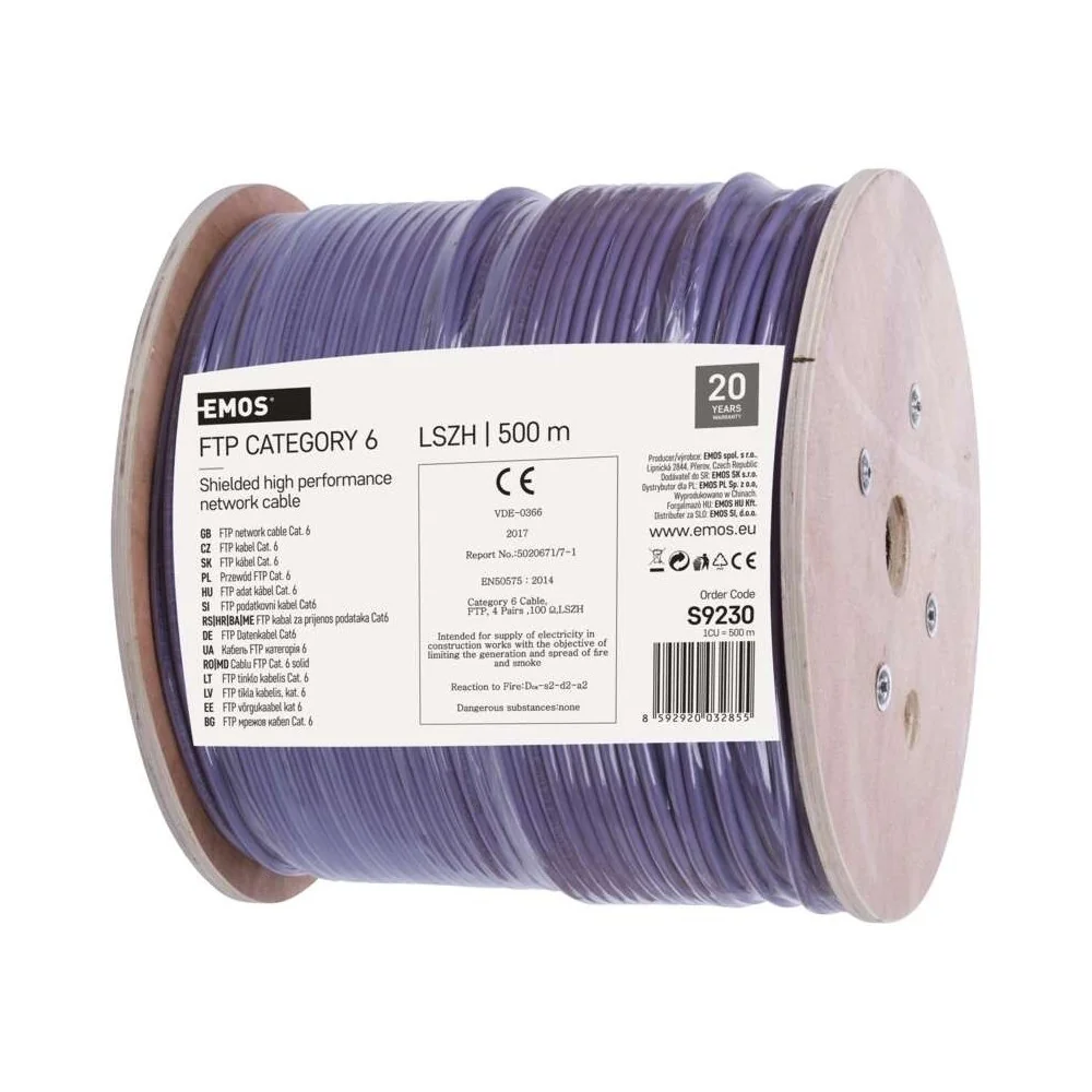EMOS garantisce questo cavo per 20 anni. Non 2 anni, non 5 anni: venti anni. È la garanzia di un prodotto costruito per durare. Quando cabli un edificio, il cavo resta nei muri per decenni. Con questa garanzia sai che le prestazioni saranno garantite nel tempo.