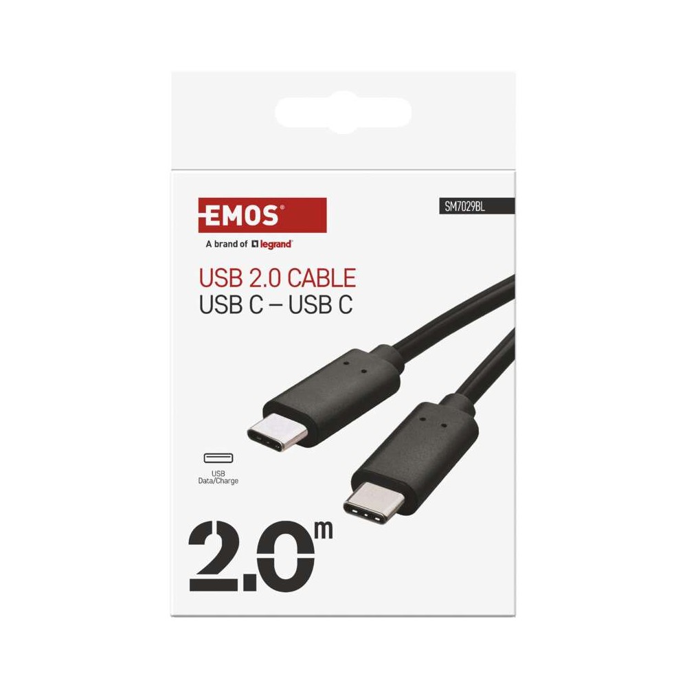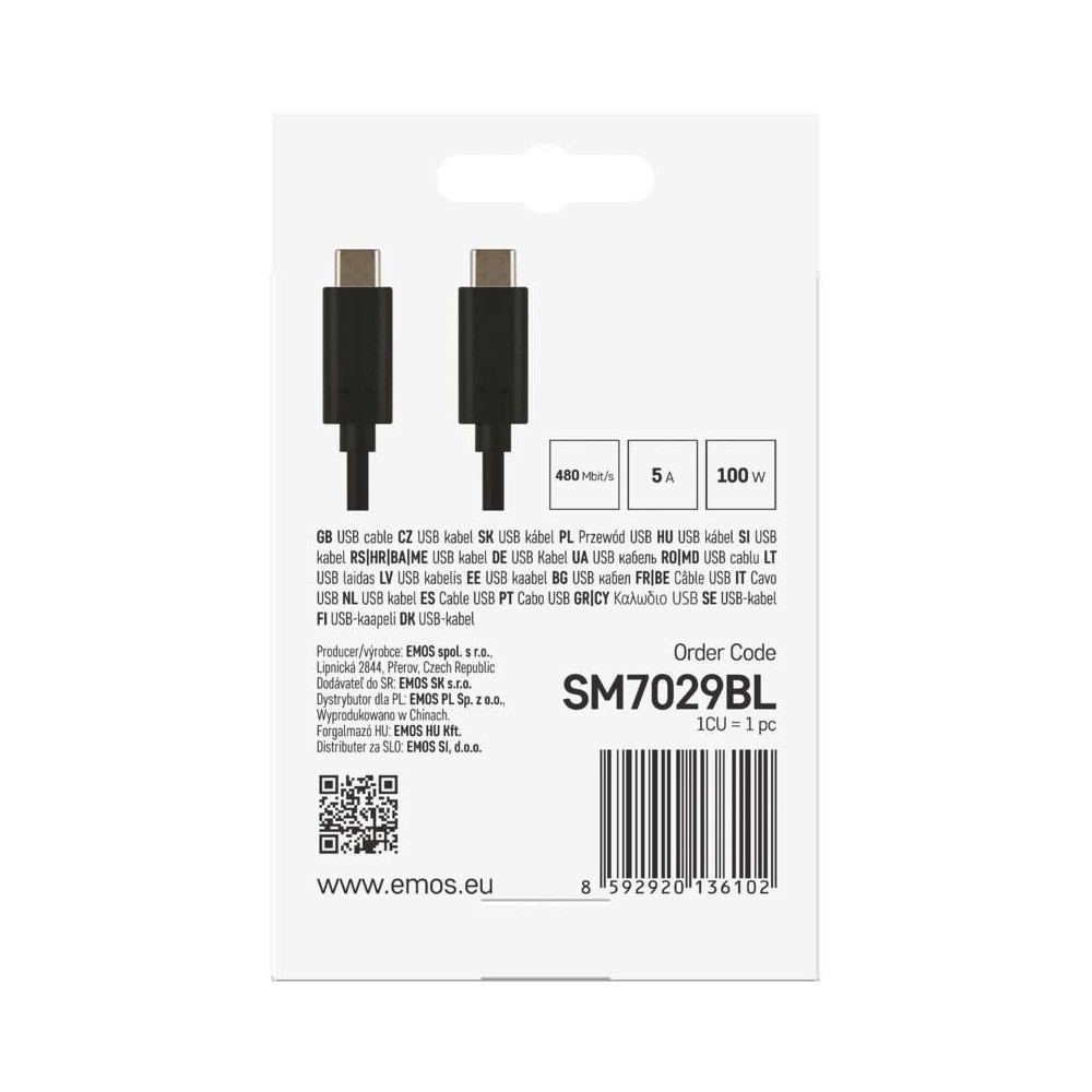 Cavo USB-C 2m 100W a USB-C Nero – Ricarica e Dati | EMOS SM7029BL