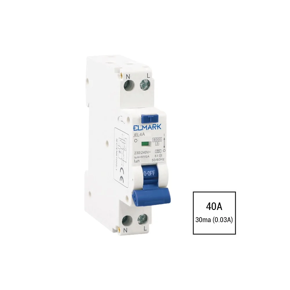 Interruttore Magnetotermico Differenziale 40A 30mA (0,03A) Tipo A Curva C RCBO 1 Modulo 1P+N 6kA | ELMARK 40506A