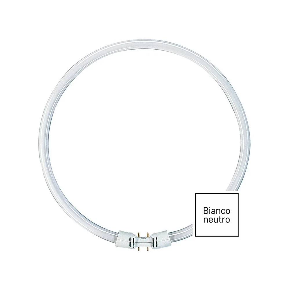 Sostituire la circolina fluorescente 300mm è semplice: rimuovi quella bruciata e inserisci il ricambio allineando i 4 pin (2 interni + 2 esterni) con i contatti del portalampada. L'attacco 2GX13 è specifico per lampade T5 circolari.