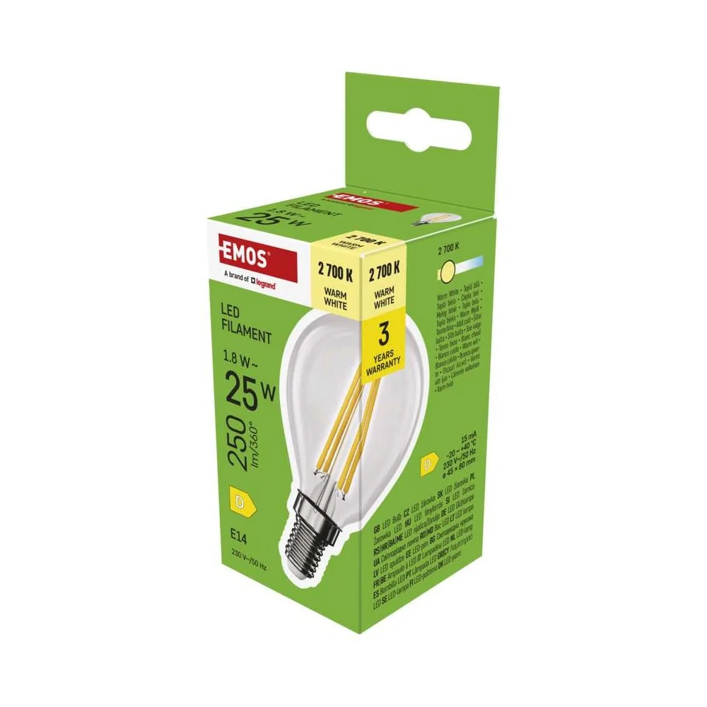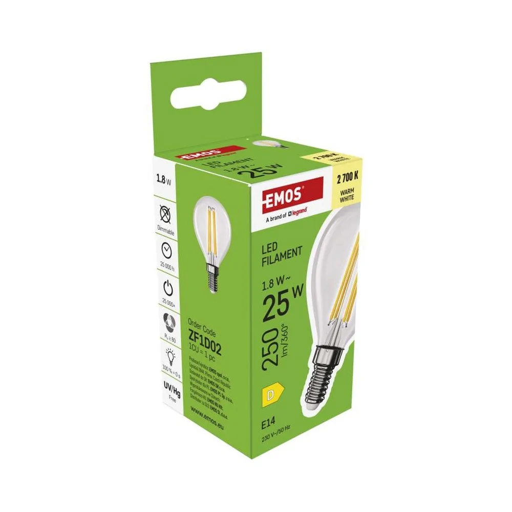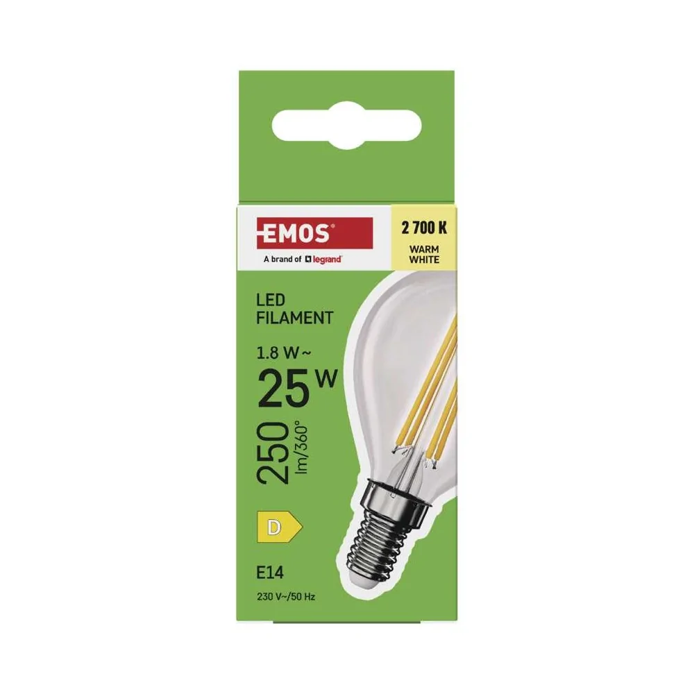 Lampadina LED Filamento Sfera E14 1.8W 250lm 2700K Luce Calda | Emos ZF1D02
