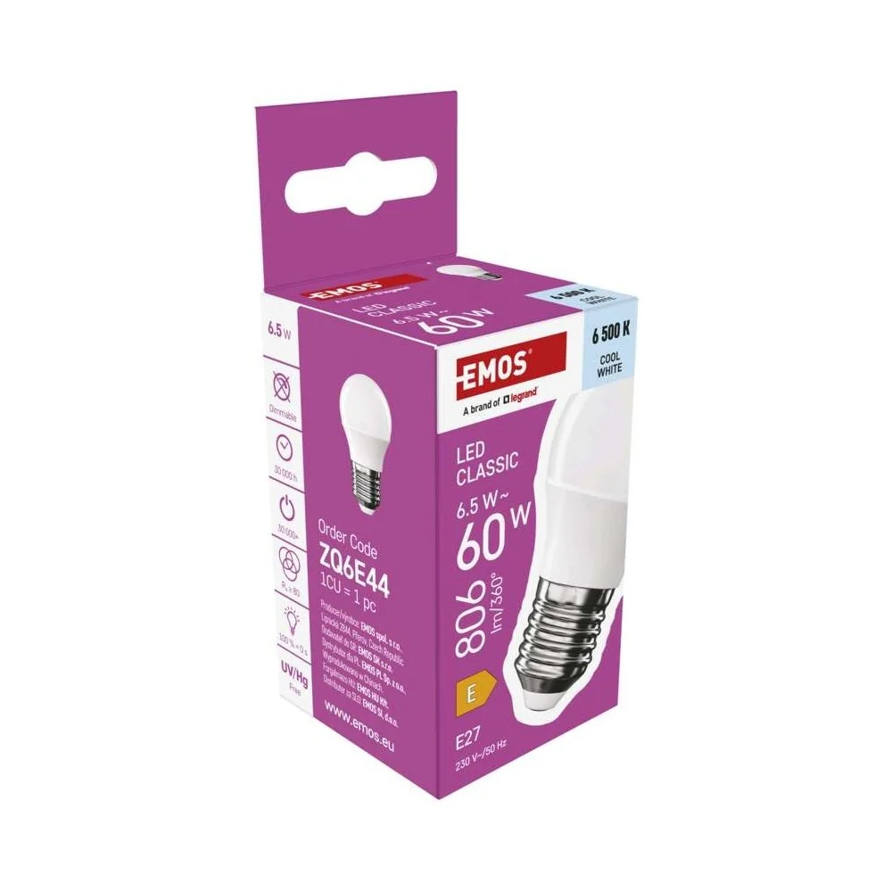 Lampadina LED Sfera E27 6.5W (60W) 6500K 806lm Luce Fredda | Emos ZQ6E44