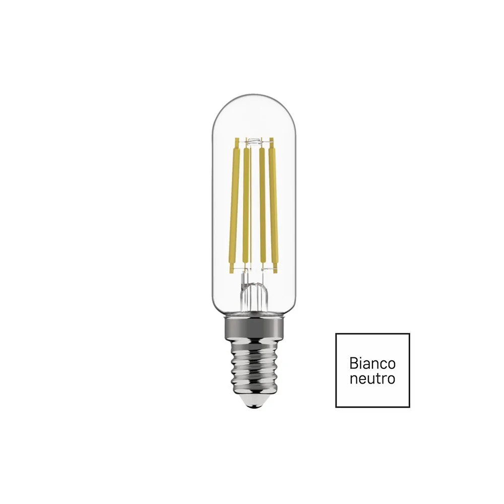 Lampadina Tubolare LED Filamento E14 4.5W (40W) 4000K per Cappa Cucina 25x90mm Luce Naturale