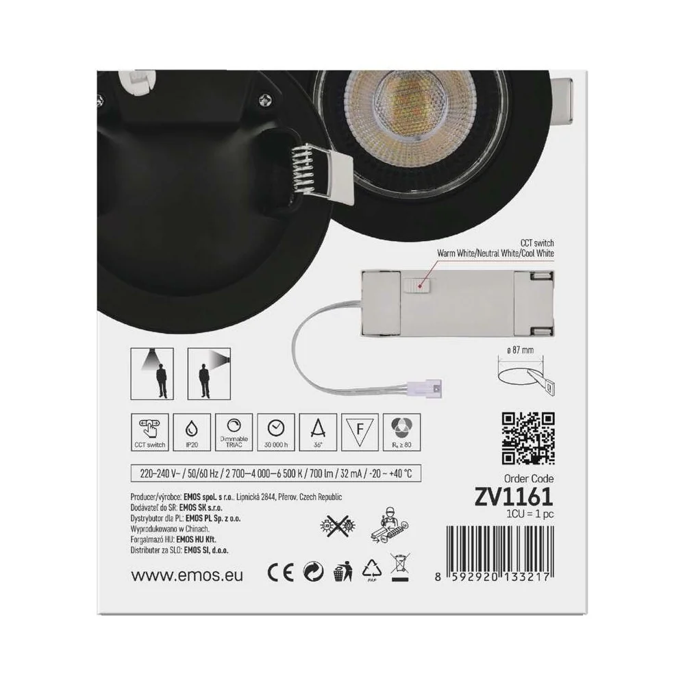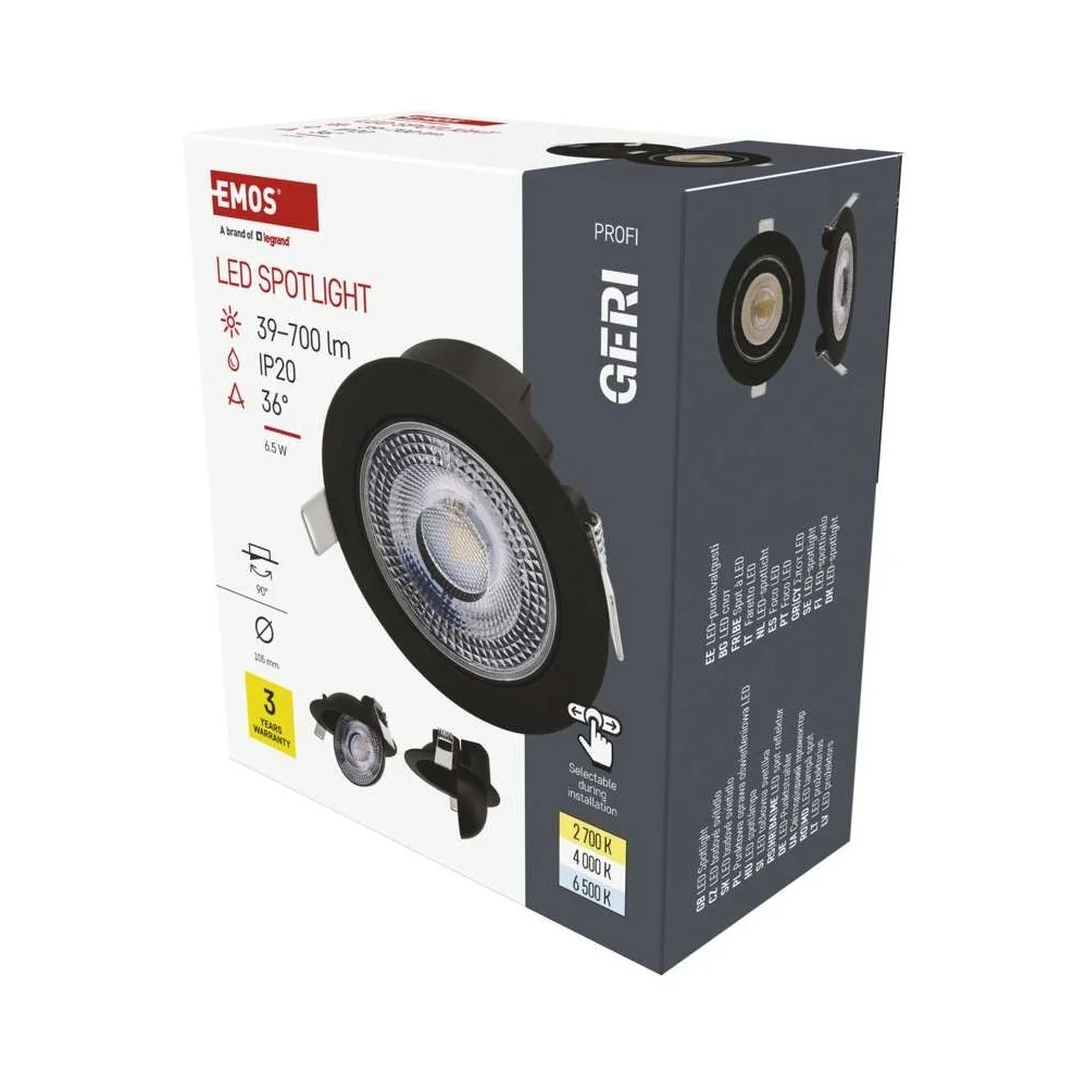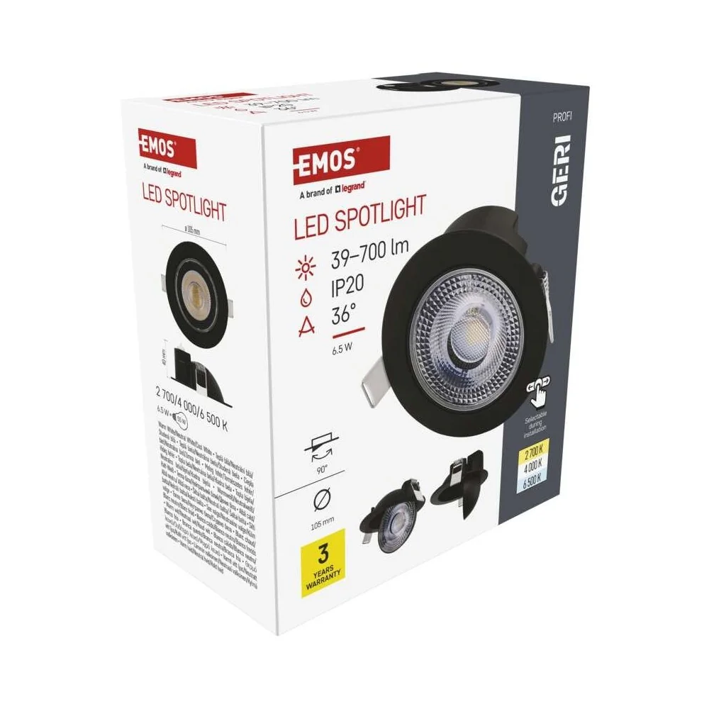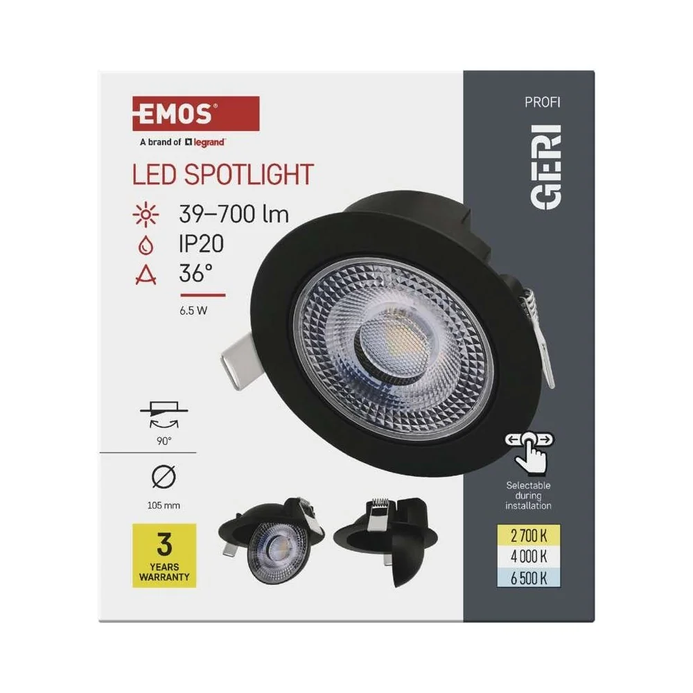 La maggior parte dei faretti da incasso illumina dritto verso il basso e basta. Il faretto da incasso orientabile GERI CCT di EMOS si inclina fino a 90° da destra a sinistra: lo punti verso un quadro, verso il piano cucina, verso una libreria, verso qualsiasi punto della stanza che vuoi valorizzare con la luce. Non serve comprare un faretto fisso più uno orientabile: questo fa entrambe le cose. Dritto per l'illuminazione generale, inclinato per l'illuminazione d'accento.