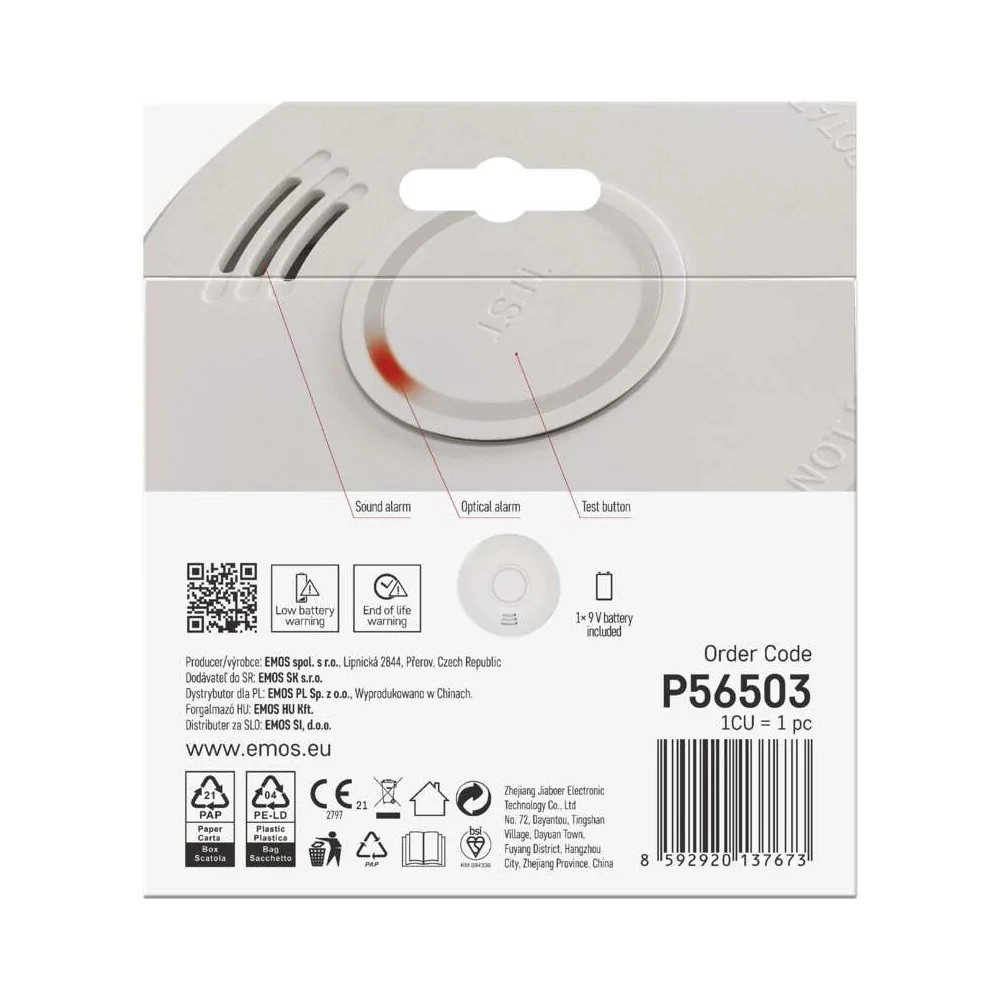 Un rilevatore di fumo è il dispositivo di sicurezza più importante che puoi installare in casa. Ti avvisa ai primi segnali di incendio, quando hai ancora tempo per evacuare e chiamare i soccorsi. Il modello EMOS P56503 è certificato secondo la norma europea EN 14604 e conforme al Regolamento Prodotti da Costruzione (CPR), che garantisce standard elevati di sicurezza e affidabilità.