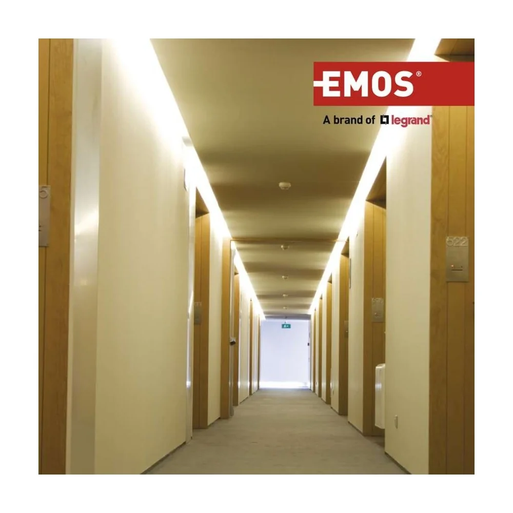 Modello EMOS P56450, rilevatore fughe gas domestico per metano GPL propano butano, alimentazione 230V AC con cavo 1.5m, allarme sonoro 85dB, segnalazione LED rosso, certificazione UNI EN 50194-1:2009, pulsante TEST, pulsante HUSH silenziamento, montaggio a parete con kit incluso.