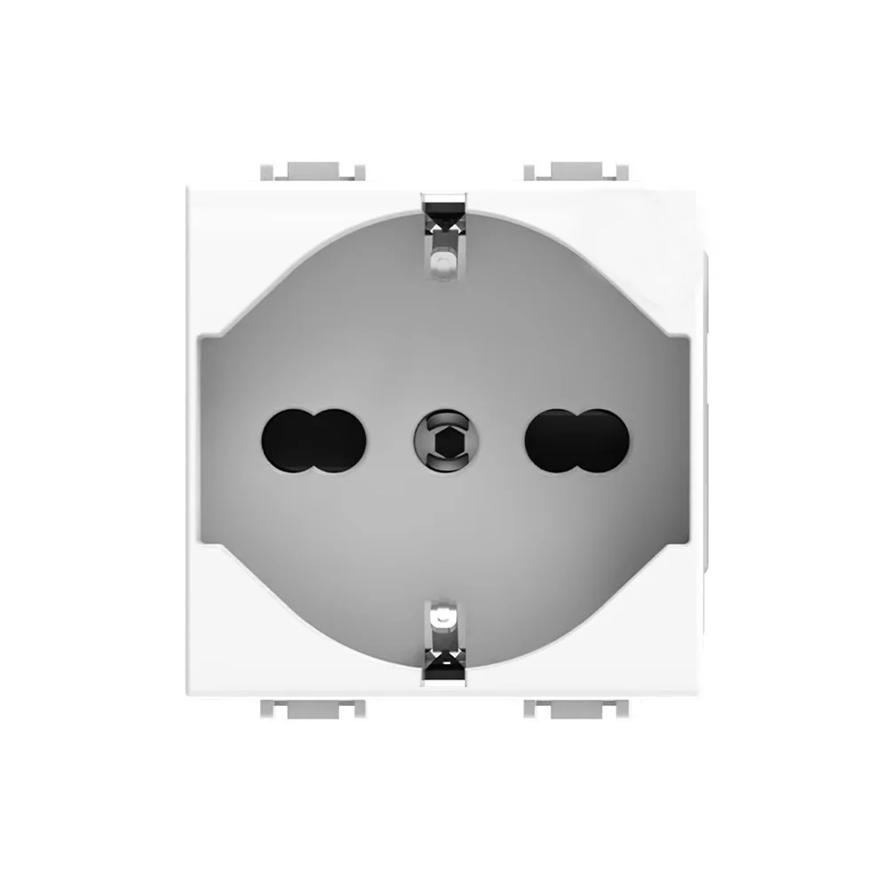 La presa schuko bipasso occupa 1 modulo, come una presa standard.