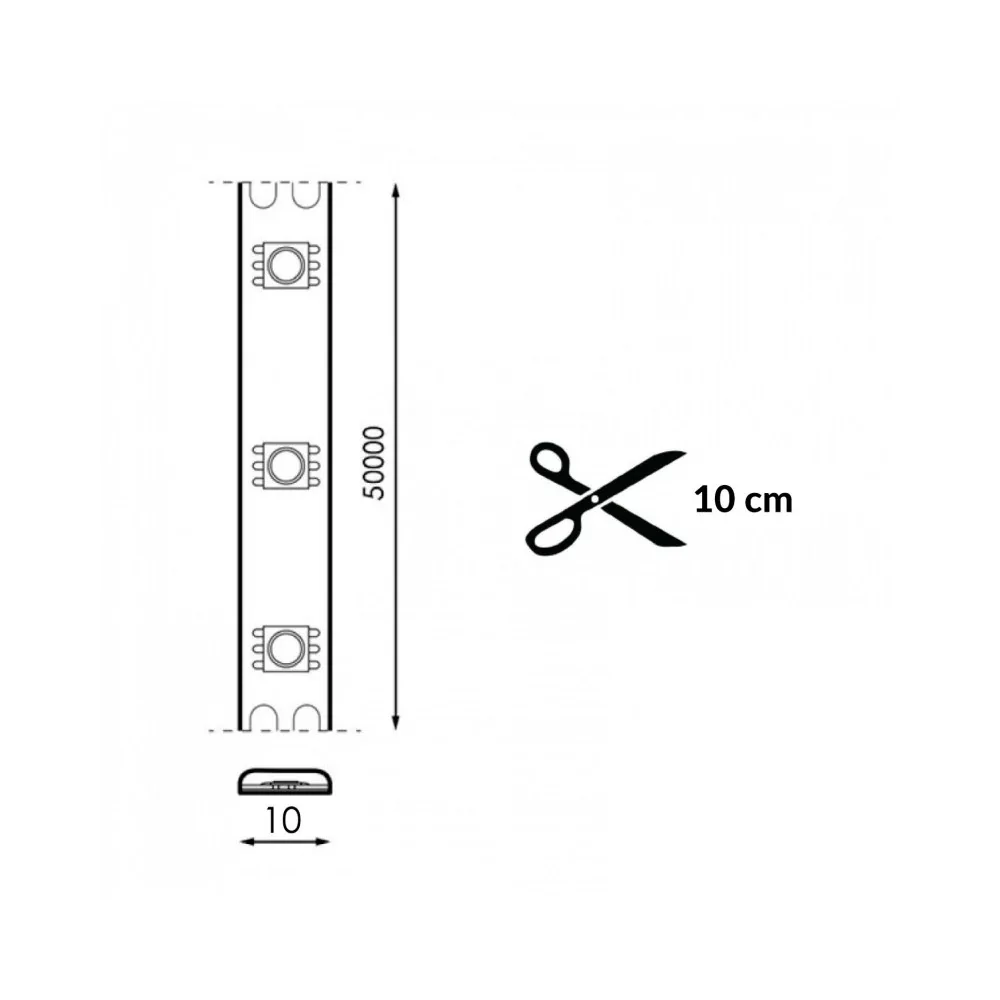 Questa striscia è dimmerabile con qualsiasi dimmer TRIAC standard. Regola l'intensità luminosa per creare l'atmosfera desiderata. Taglio ogni 10cm seguendo le linee indicate: compri solo i metri che ti servono. Retro adesivo 3M per fissaggio rapido.