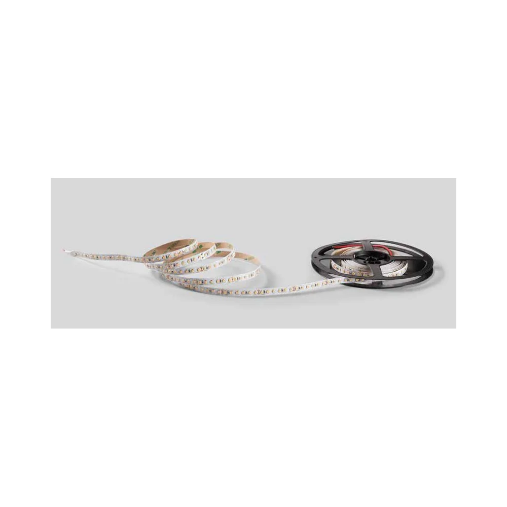 Alimentazione 24V DC, potenza 11W/m (55W bobina), flusso luminoso 1200lm/m (6000lm bobina), temperatura colore 4000K luce naturale, 120 LED SMD per metro, efficienza 109lm/W, larghezza PCB 8mm, lunghezza bobina 5 metri, tagliabile ogni 5cm, dimmerabile PWM, adesivo 3M, IP20 solo interni.