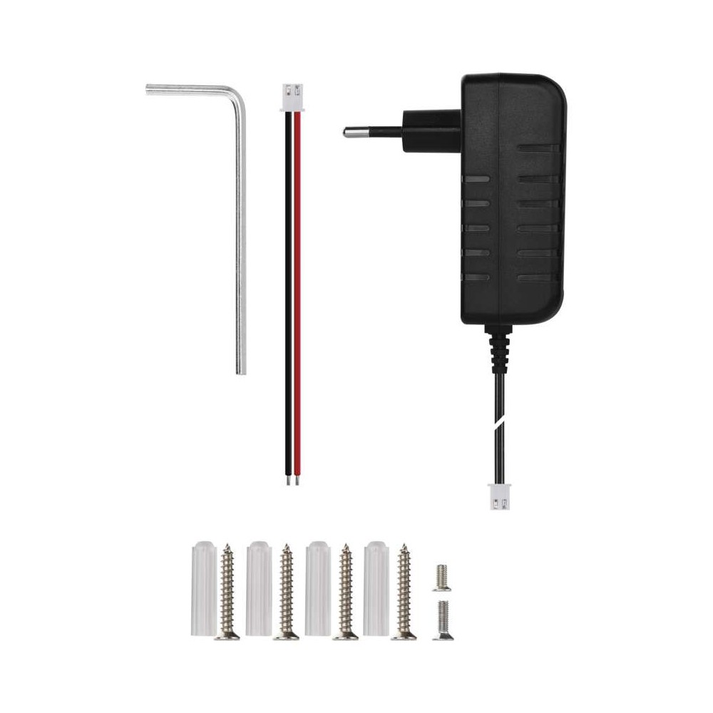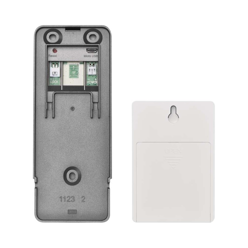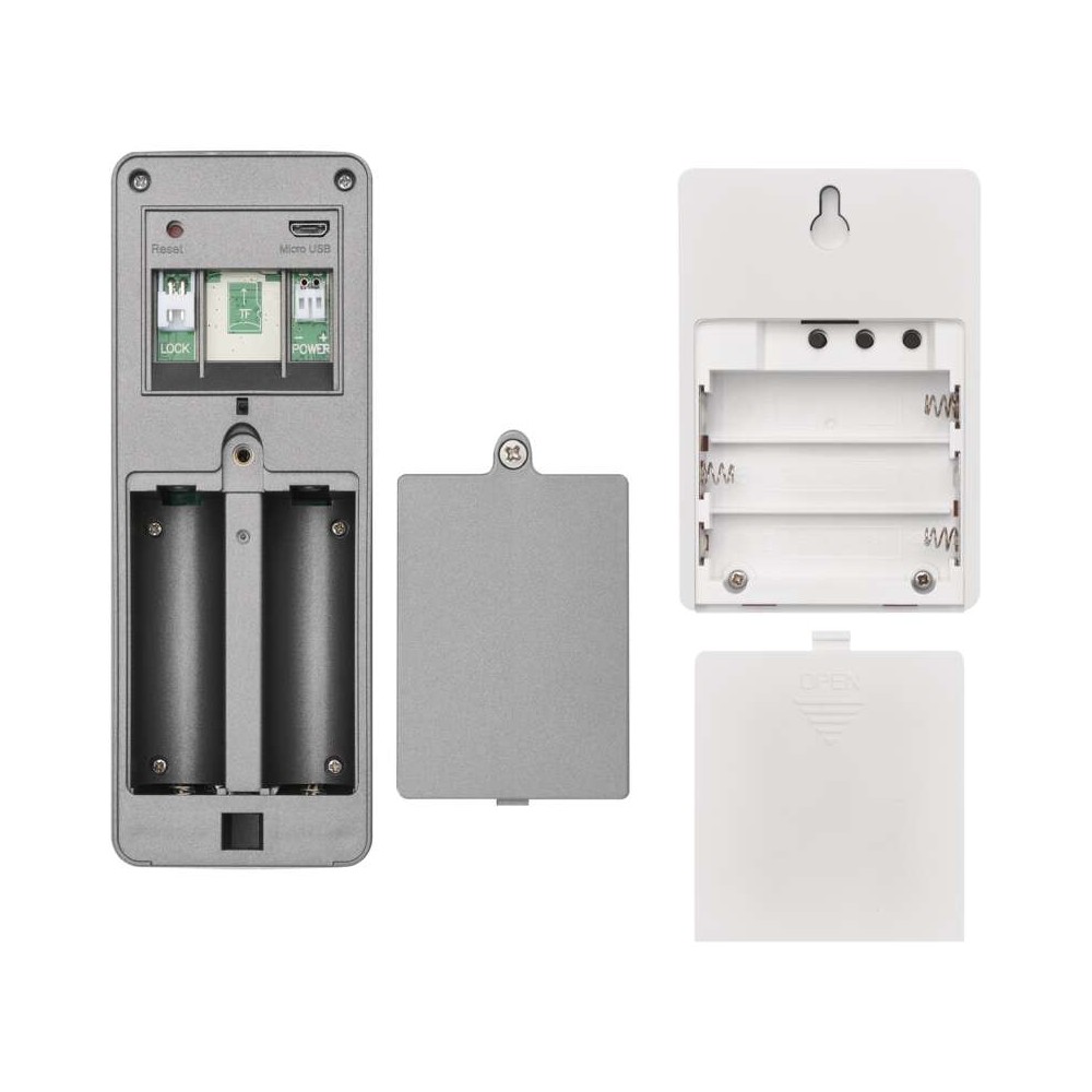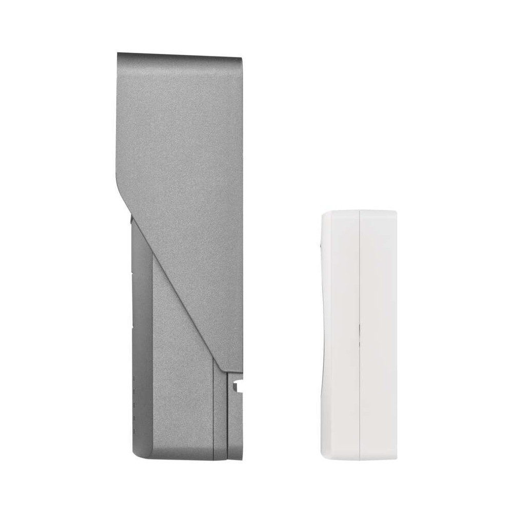 Il campanello è alimentato da un alimentatore 12 V e il ricevitore interno funziona con 3 batterie AA. Grado di protezione IP44 per resistere alle intemperie, allarme anti-manomissione da 85 dB e vite di sicurezza inclusa per protezione contro i furti.